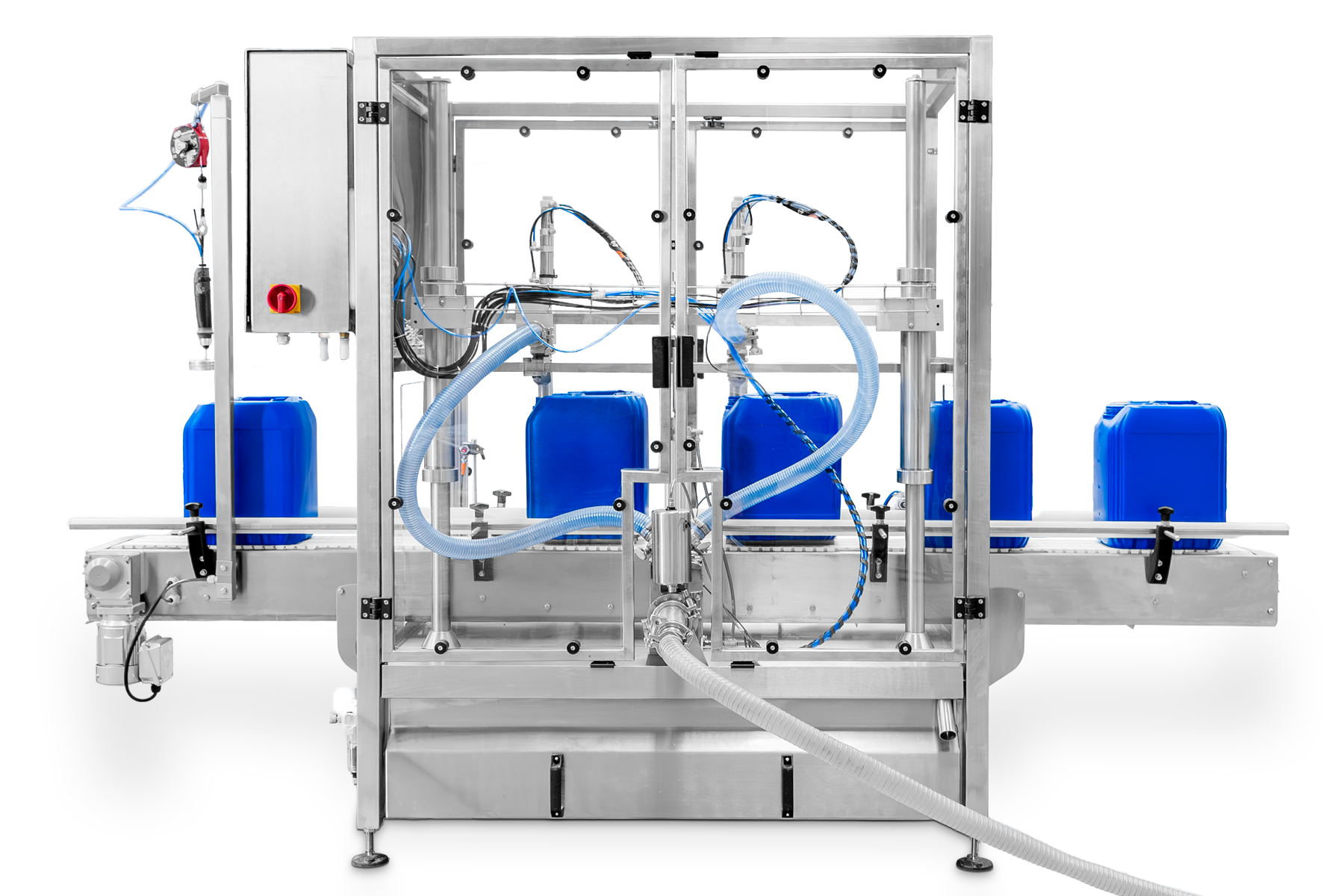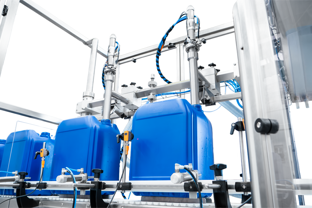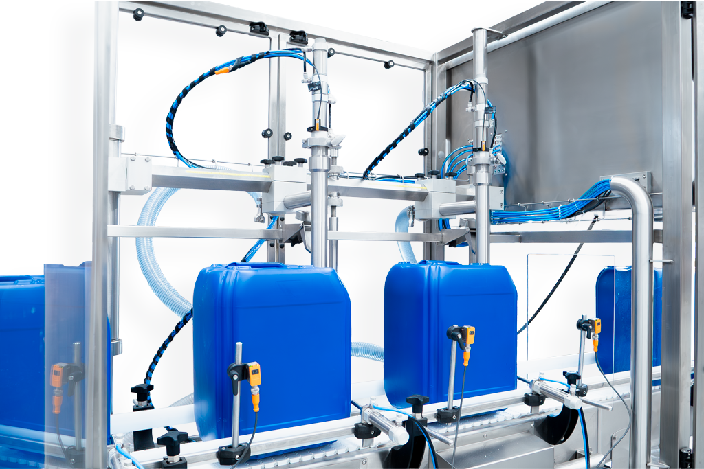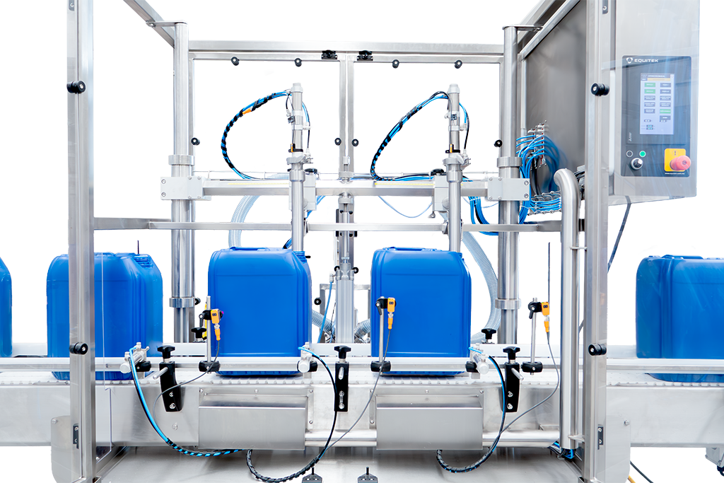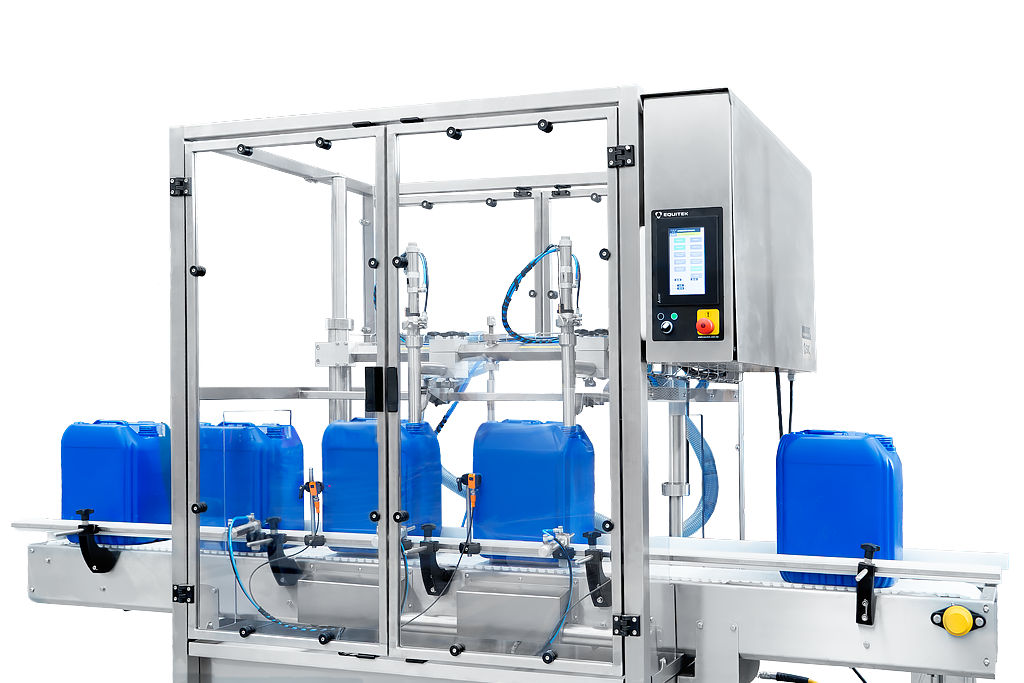 La serie DPC comprende un conjunto de equipos para envasado de porrones, cubetas o garrafas por peso, con productos líquidos o viscosos en presentaciones desde 5 hasta 50 kg. Estos equipos se ofrecen con transportador lineal motorizado para procesos completamente automáticos, o bien, con transportador de rodillos para procesos semiautomáticos, y desde 1 hasta 6 boquillas de llenado simultáneo en ambos casos.