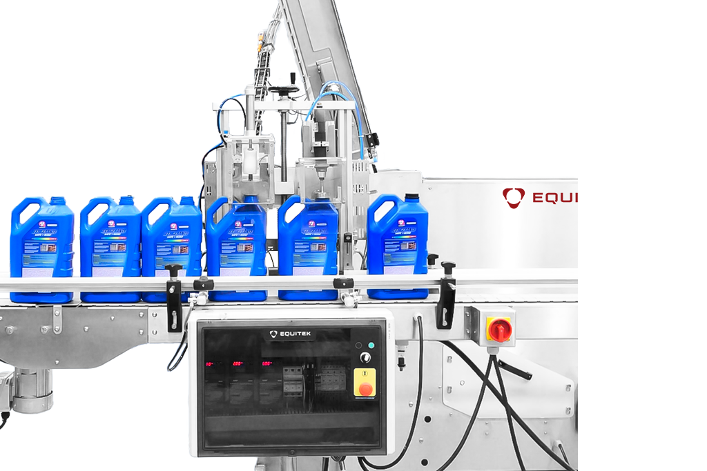 Equipo con sistema de colocado y enroscado de tapas lineal.